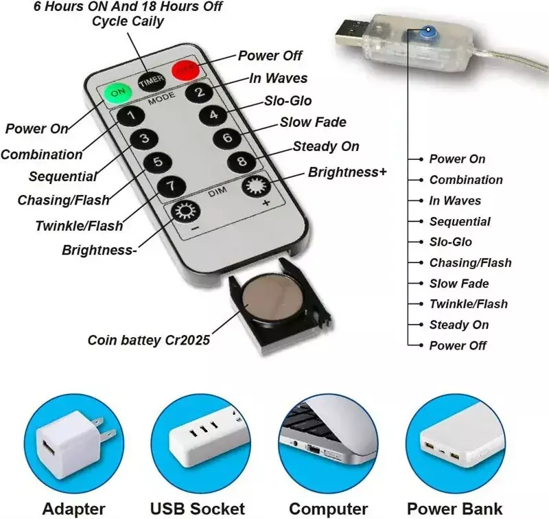 1x Controle remoto com 8 modos de luz