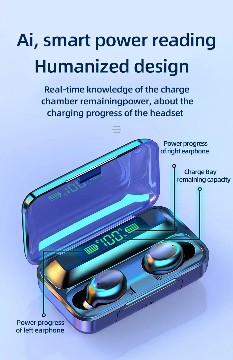 Novo em fones de ouvido bluetooth 9d estéreo baixo alto esporte fones mãos livres controle toque tws sem fio à prova dwaterproof água